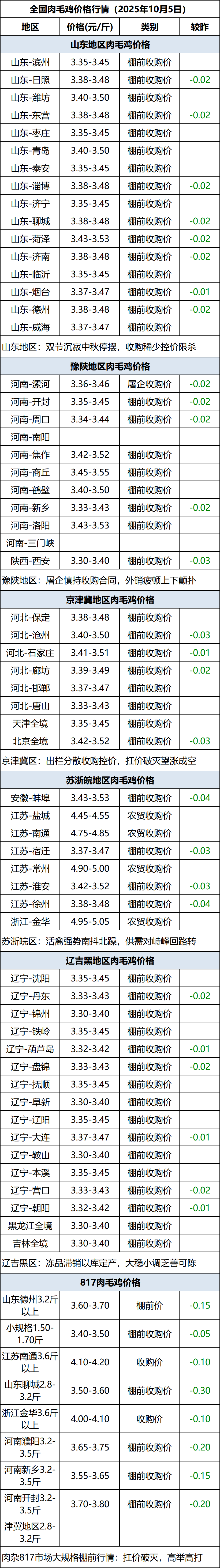 10月5日全国肉毛鸡价格行情(落价)
