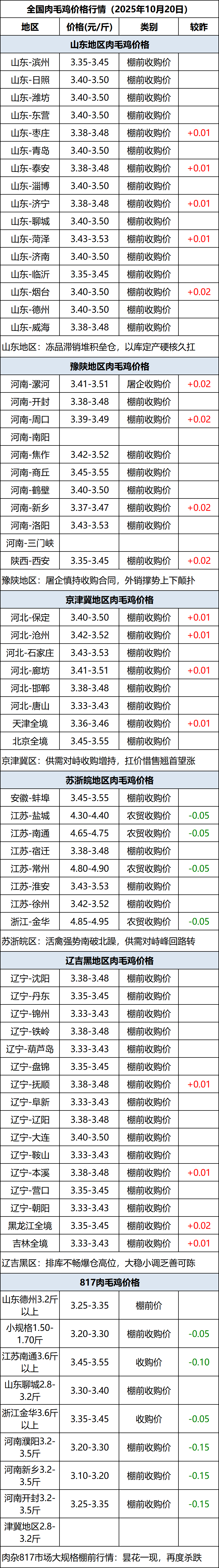 10月20日全国肉毛鸡价格行情(涨价)