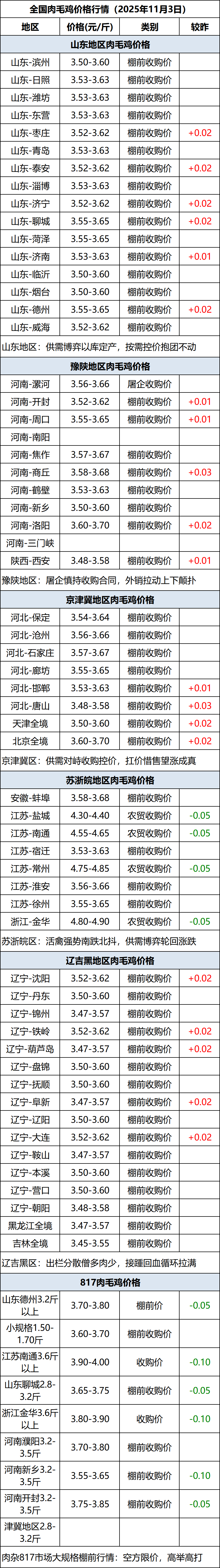 11月3日全国肉毛鸡价格行情(涨价)