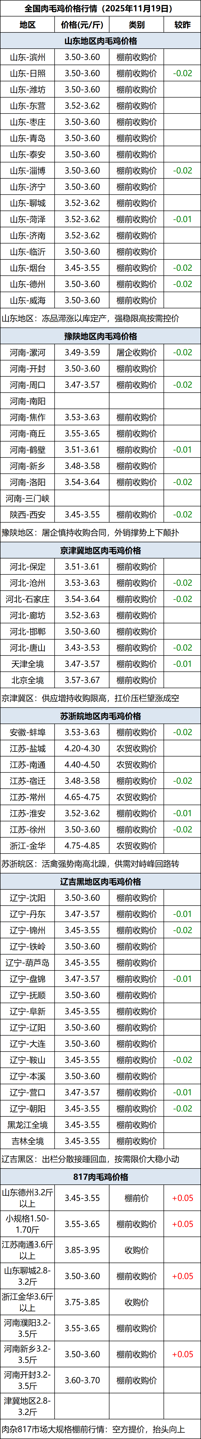 11月19日全国肉毛鸡价格行情(落价)