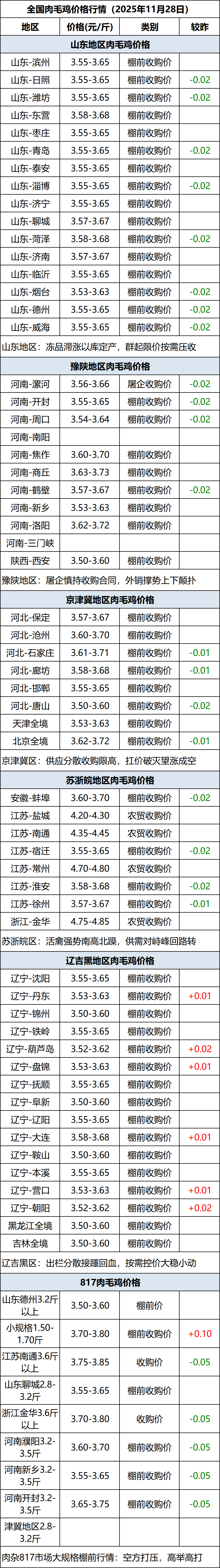11月28日全国肉毛鸡价格行情(落价)