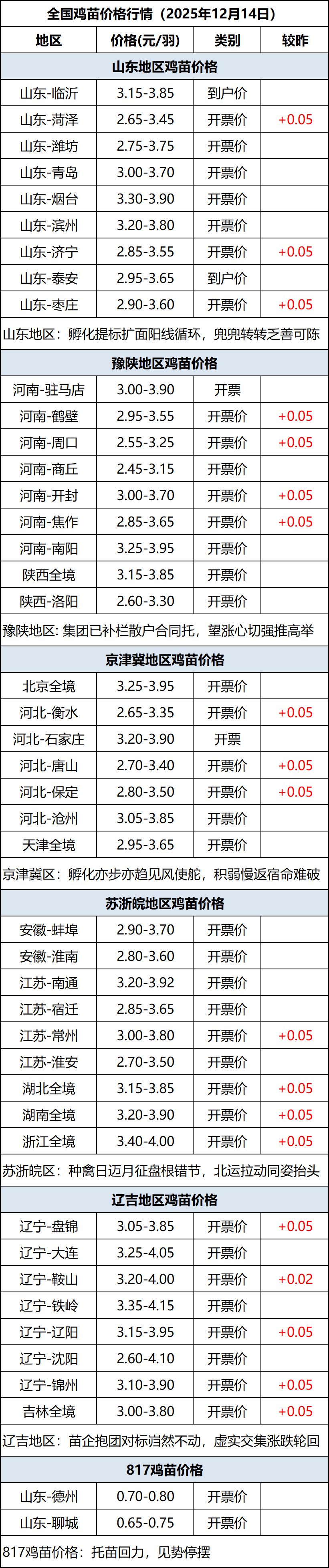 12月14日全国鸡苗(肉鸡)价格行情(涨价)