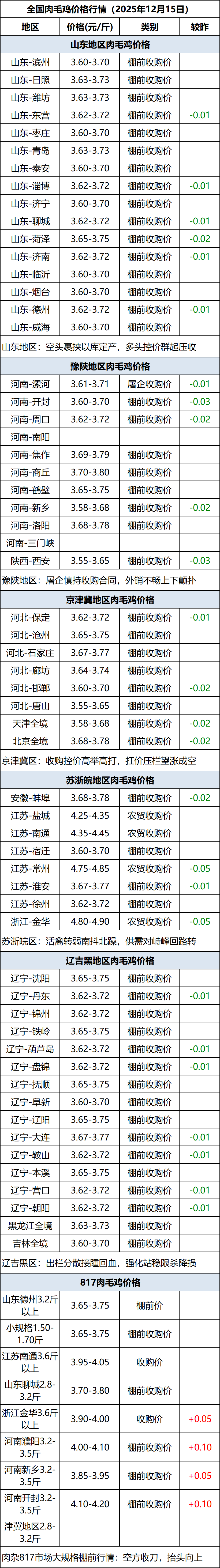 12月15日全国肉毛鸡价格行情(落价)