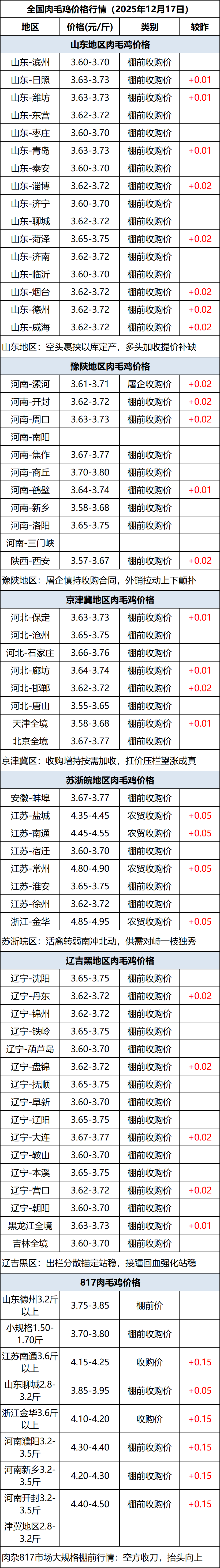12月17日全国肉毛鸡价格行情(涨价)