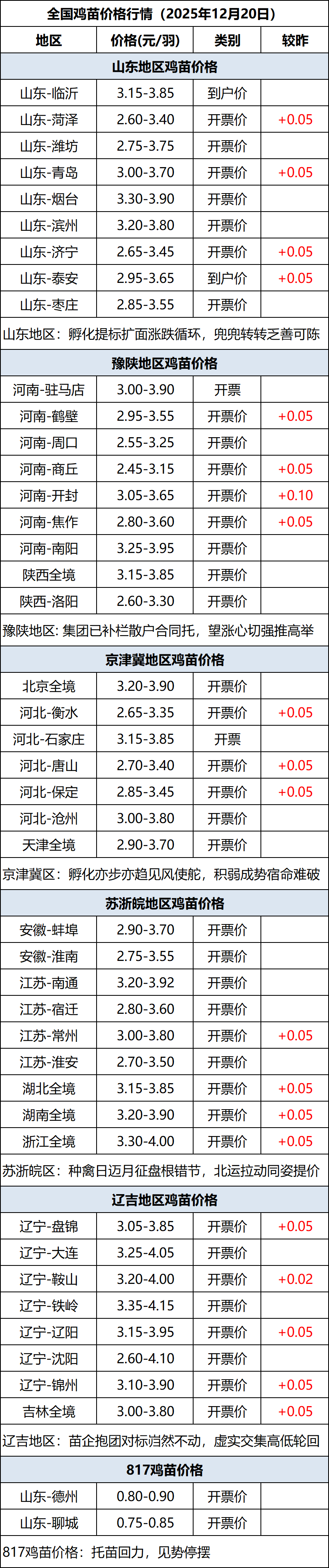 12月20日全国鸡苗(肉鸡)价格行情(涨价)