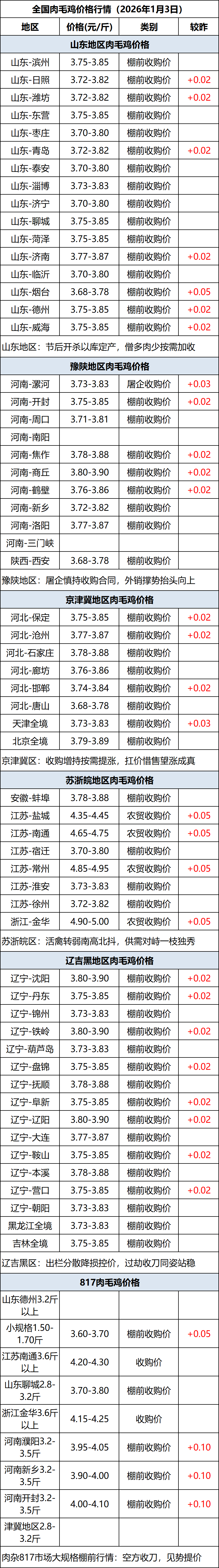 1月3日全国肉毛鸡价格行情(涨价)