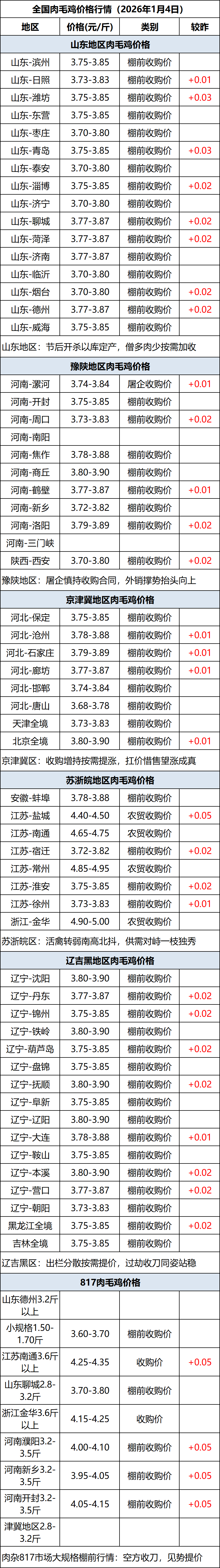 1月4日全国肉毛鸡价格行情(涨价)