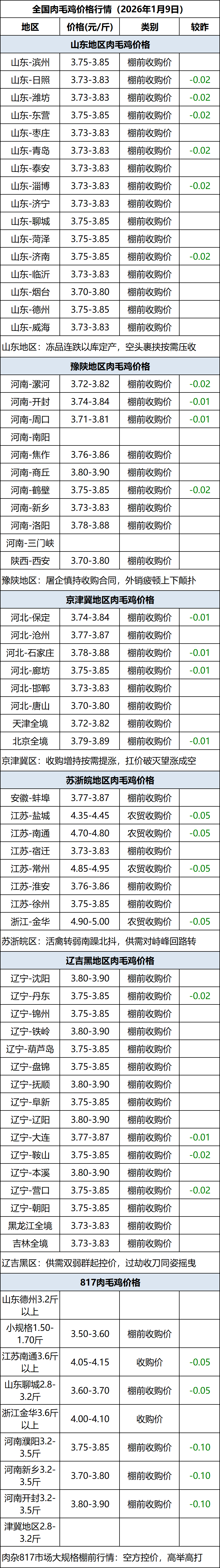 1月9日全国肉毛鸡价格行情(落价)
