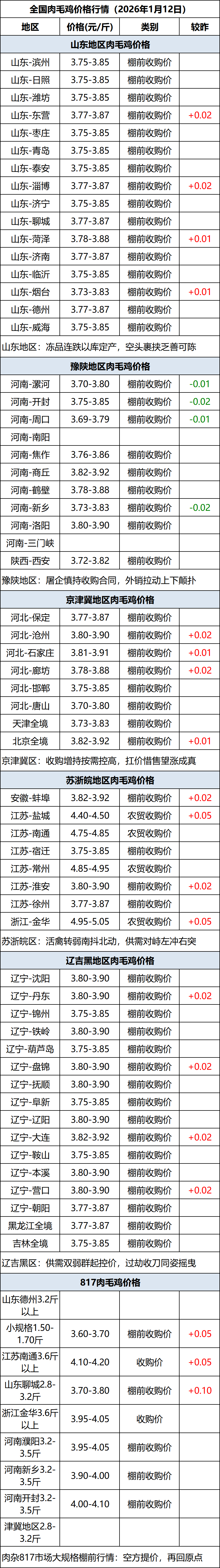 1月12日全国肉毛鸡价格行情(涨价)