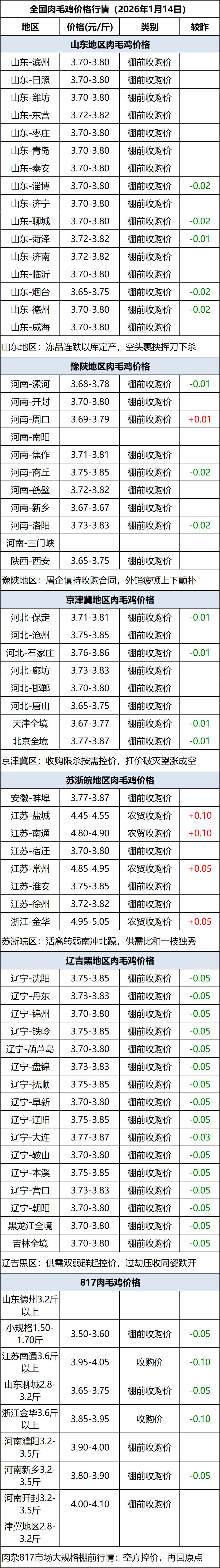 1月14日全国肉毛鸡价格行情(落价)
