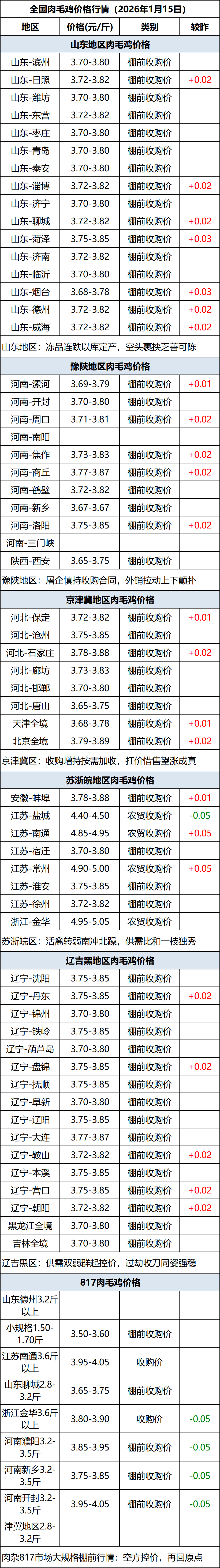 1月15日全国肉毛鸡价格行情(涨价)