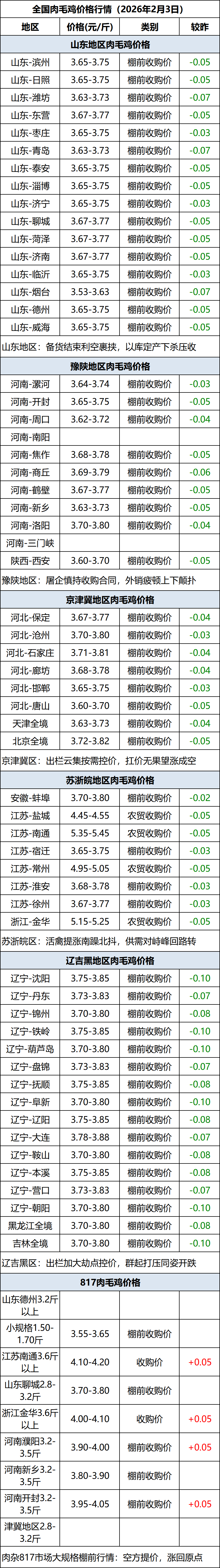 2月3日全国肉毛鸡价格行情(落价)