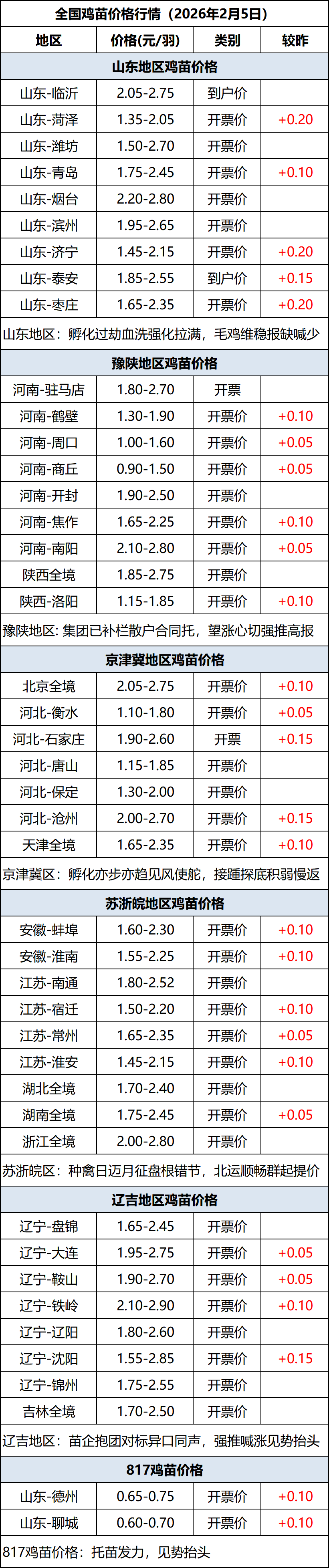 2月5日全国鸡苗(肉鸡)价格行情(涨价)