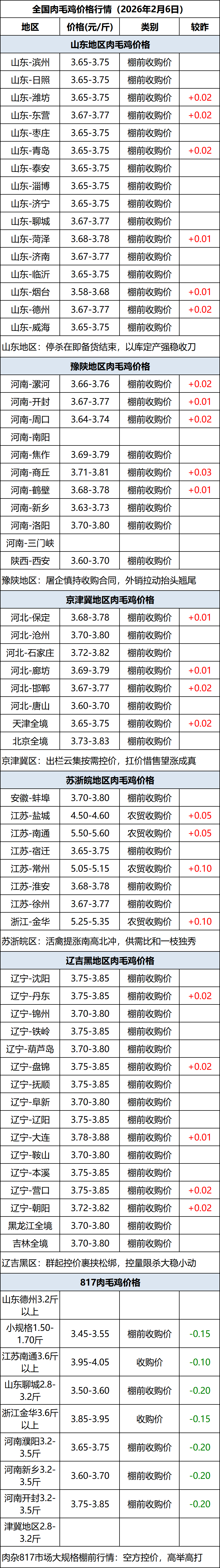 2月6日全国肉毛鸡价格行情(涨价)